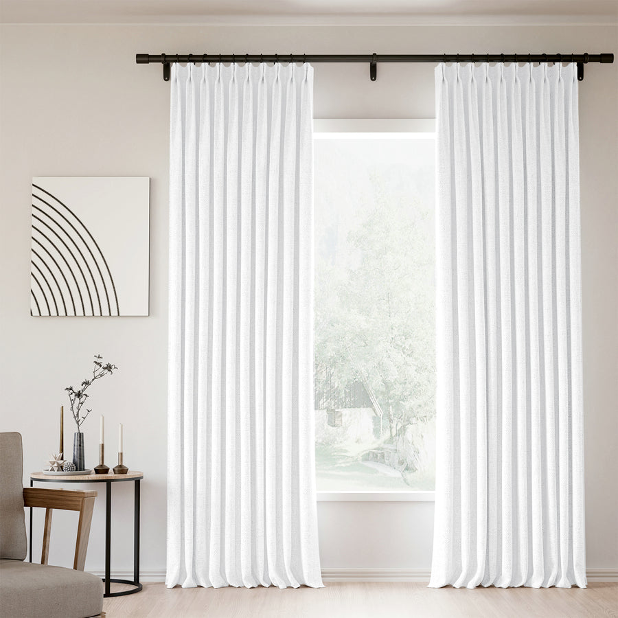 The White Sheer Drapes are designed to enhance natural light while preserving a sense of softness and privacy. Sheer curtains are especially valued in spaces where brightness and openness are essential, such as living rooms, dining areas, and bedrooms that benefit from a gentle, uplifting atmosphere. These drapes filter sunlight delicately, reducing harsh glare while allowing rooms to remain bright and inviting throughout the day. Their lightweight, breathable fabric creates an airy effect that visually expands the space, making them ideal for smaller rooms or interiors where heavier drapery would feel overwhelming. The pleated design adds subtle structure, ensuring that the sheers hang neatly and maintain a polished, intentional appearance. White sheer drapes are also highly adaptable. They work beautifully on their own for a minimalist look or layered beneath heavier curtains such as linen or velvet for greater flexibility. This layered approach allows homeowners to adjust light levels and privacy throughout the day while maintaining a cohesive design. For those seeking a clean, timeless window treatment that enhances light and softness, these sheers provide an elegant solution.